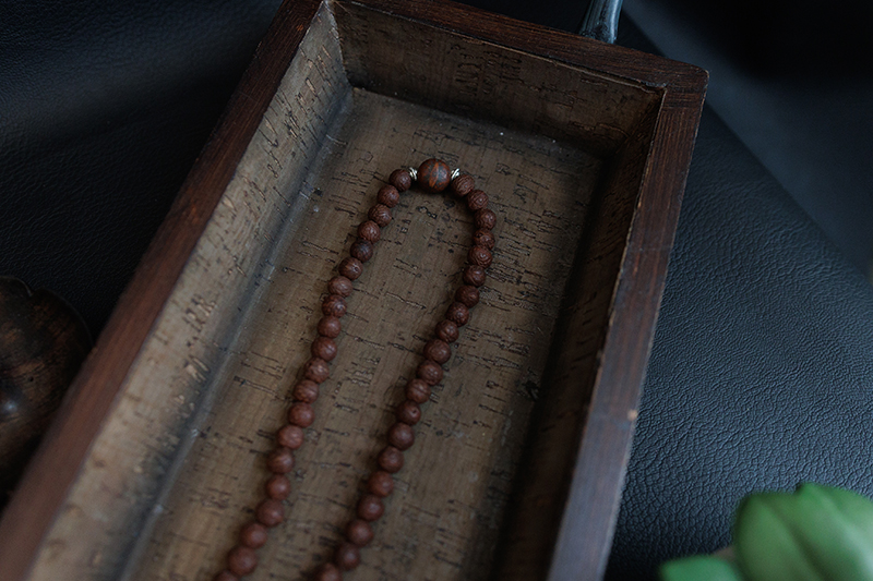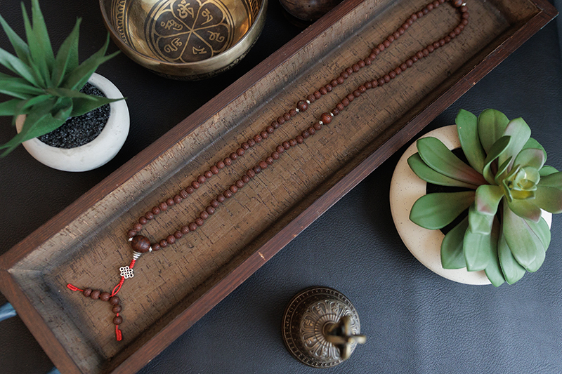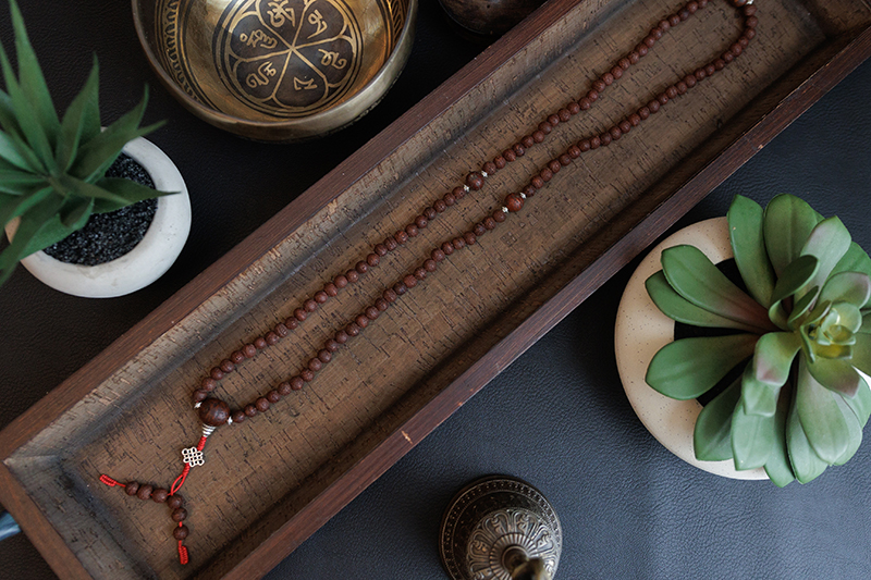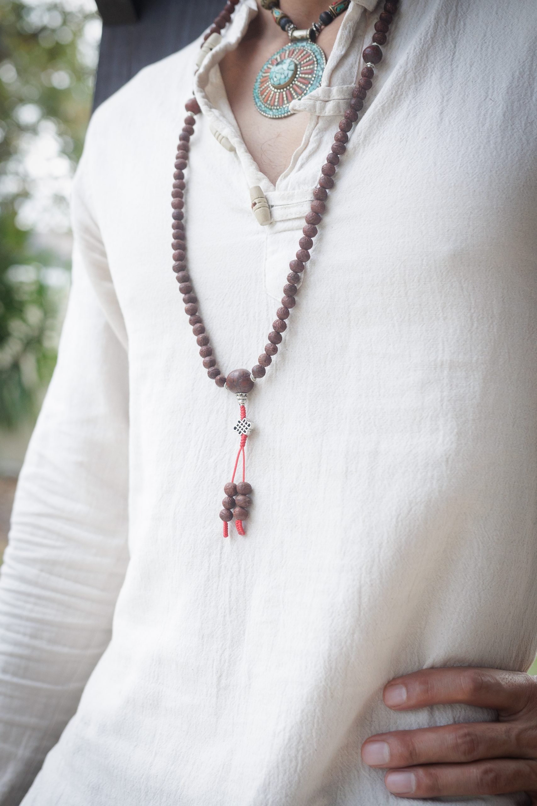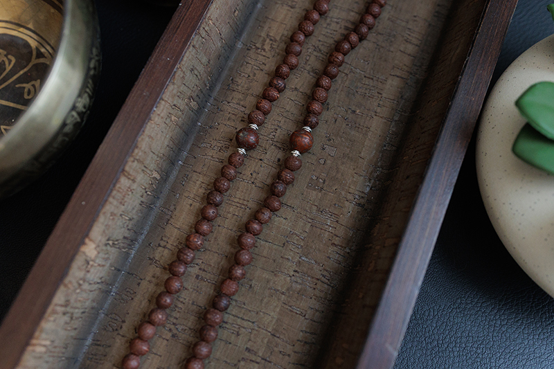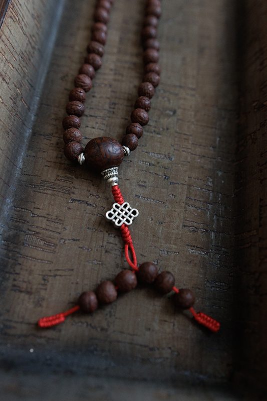 - Materials: Raktu seed beads, Bodhi seed beads, White metal (Endless knot)