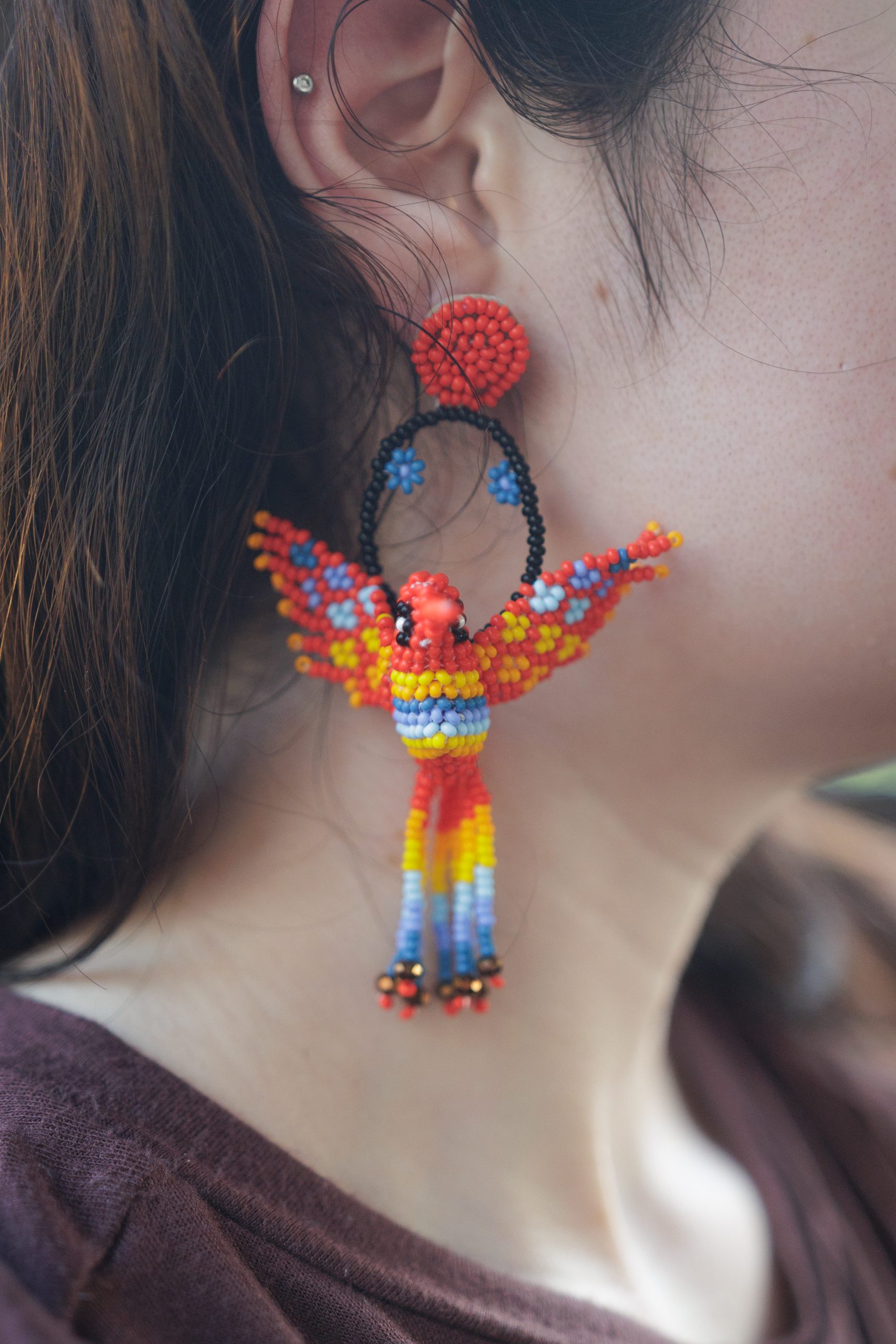 These earrings capture the essence of the hummingbird, a symbol of love, joy, and agility in Mayan culture. Lightweight and elegant, they’re the perfect way to add a burst of color and cultural richness to any outfit, whether for daily wear or special occasions.
